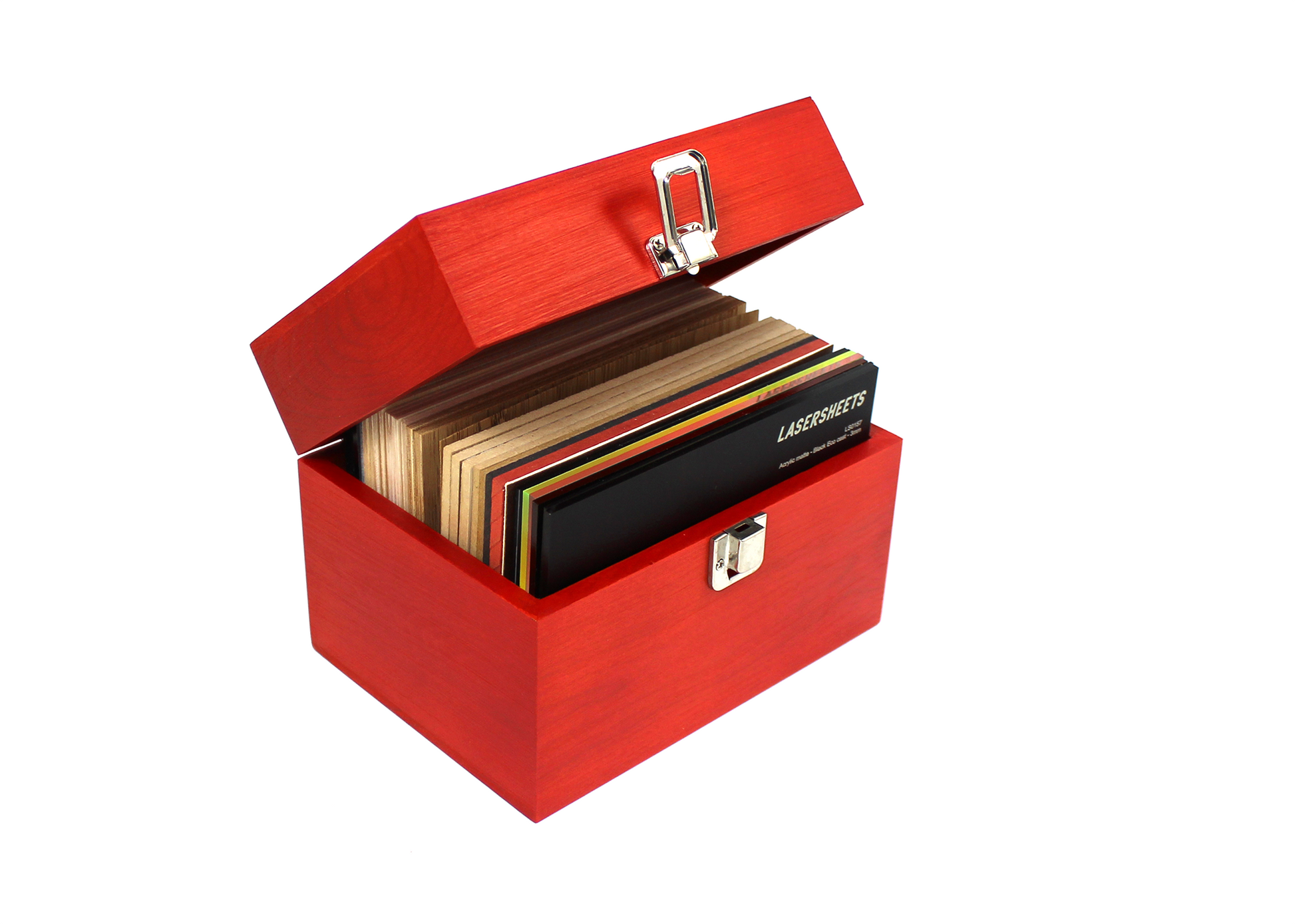 In the Sample pack are 37 material samples on A6 format (14.8 x 10.5 cm). The 37 materials which we have chosen are our bestsellers, this one sheets the most are ordered by laser cutters.